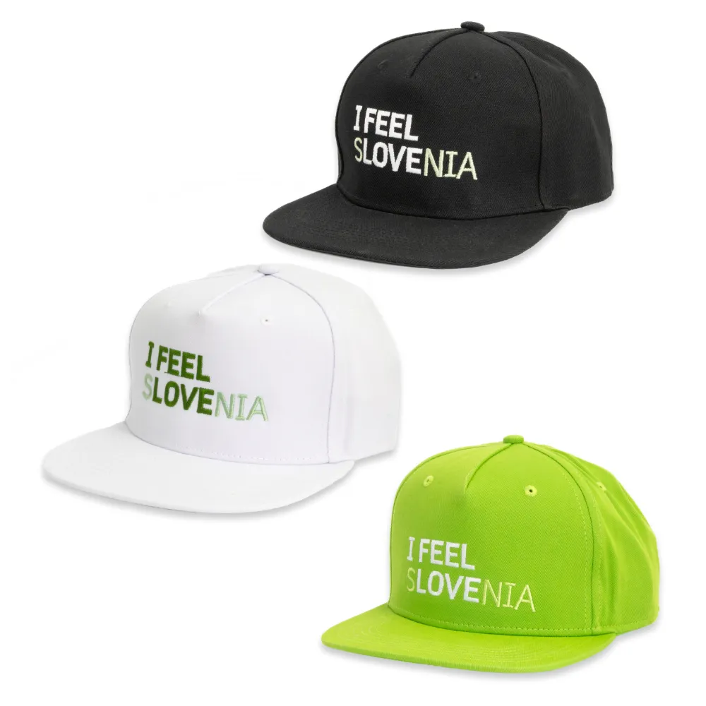 Cap with a flat peak made of 100% acrylic. Sweatband inside. The I feel Slovenia logo is embroidered on the front of the cap. Universal size.